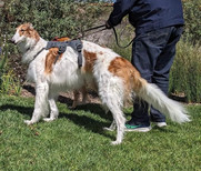 "It’s hard to believe that almost 5 years has passed since my wonderful NBRF Domestic rescue, Coco (in the red harness) entered my life, followed almost a year later by the addition another borzoi to our family, NBRF - International rescue, Kallie (black harness) from South Korea.